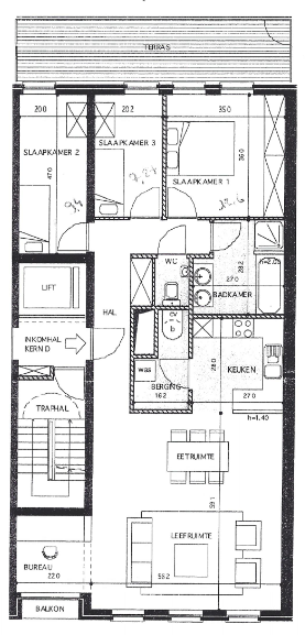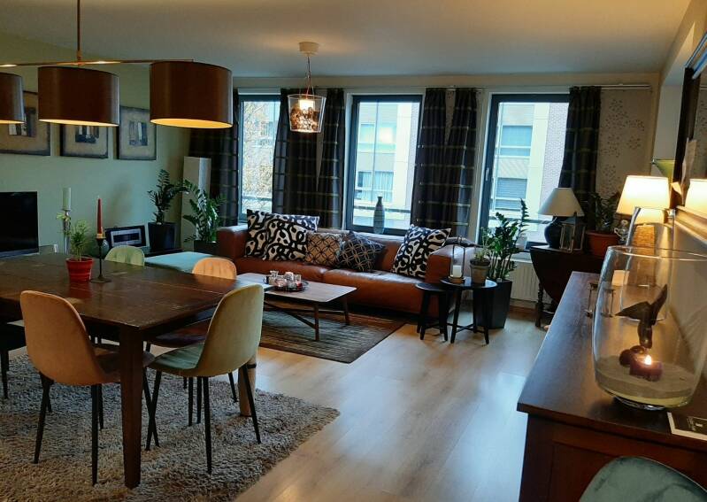 Het elegante, lichtrijke appartement ligt op de 2de verdieping en is bereikbaar met een lift. Drie slaapkamers, veel licht en heel wat ruimte zijn de voornaamste troeven van het appartement. Bij het binnenkomen voel je je meteen thuis in de gezellige leefruimte.